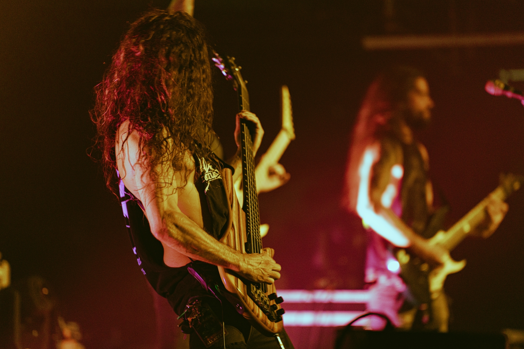 The next band was Revocation whom it felt like most folks were there to see but I’d never seen live before and had actually  only heard a few of their songs. I knew I’d love them as soon as their drummer was playing along with Phil Collins playing on the house speakers as they got ready for the final sound check. I, too, felt it coming in the air that night. Live, they were super tight heavy metal with a great mix of heavy and death beats happening on drums who was shockingly versatile behind the kit. Revocation was also down a guitarist for this tour but Harry Lannon of New Jersey band Cognitive filled the spot with gusto. The crowd moved through the entire set and was particularly excited to hear songs from 2018’s “The Outer Ones”. Hell, at one point, even The Devil himself came on stage and rocked out so, you know the crowd was on fire.